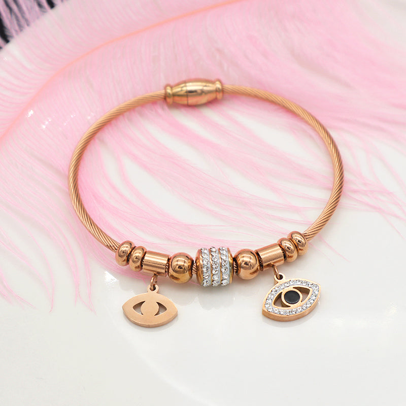 Trendy Jewelry Women Stainless Steel Bangle Gold Plated Charm Bracelet
