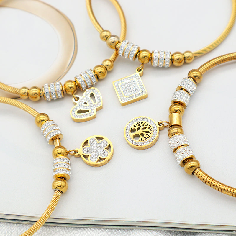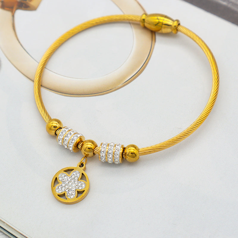 Women Girl 18k Gold Plated Stainless Steel Bangle Charm Bracelets