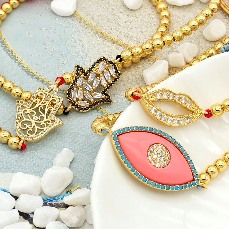 Trendy Women Jewelry Evils Eye Charm Bracelet Bangle 18k Gold Plated Beaded Evils Eye Jewelry