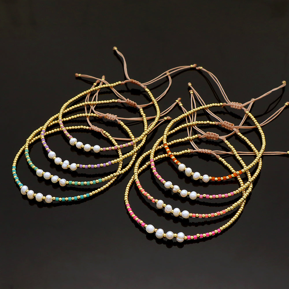 Colorful Miyuki Beads Fresh Water Pearl With Gold Plated Brass Beads Handmade Braided Woven Macrame Bracelet