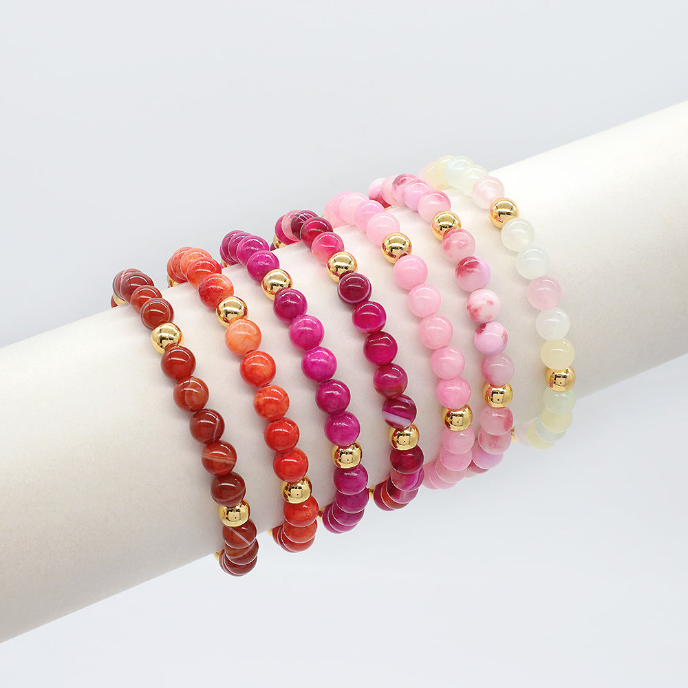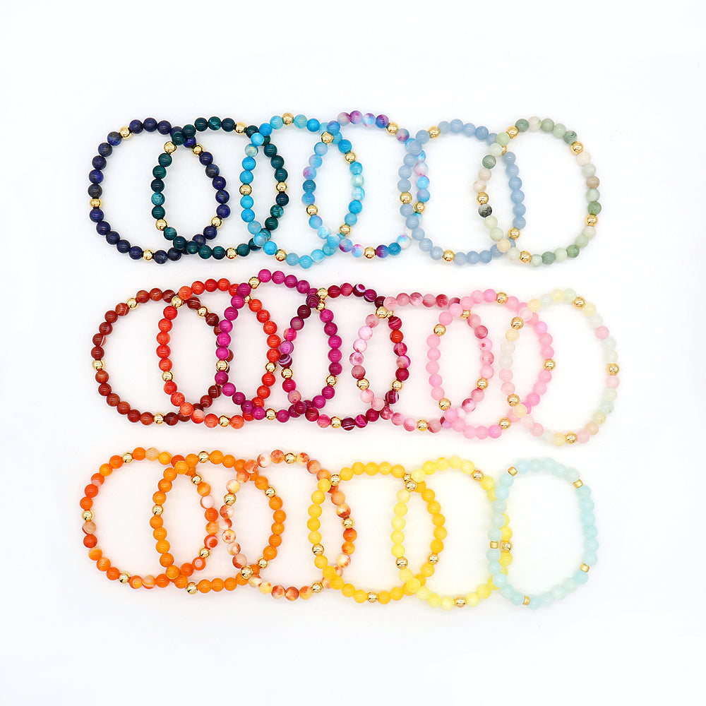 Custom Gold Plated Brass Beads 6mm Natural Stone Beads Gemstone Elastic Handmade Bracelet