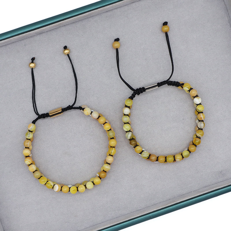 Custom Stainless Steel Logo Friendship Women Men Adjustable Handmade Natural Braided 6mm Colorful Jade Beads Macrame Bracelets