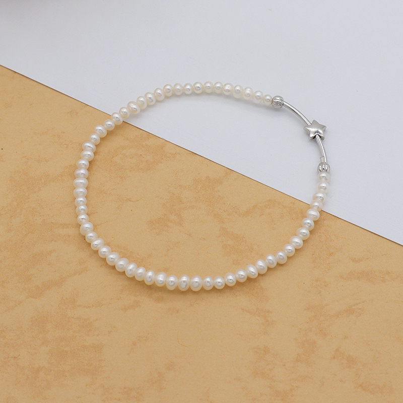 Euro Women Jewelry 925 Sterling Silver Beads High Quality Natural Fresh Water Pearl Elastic Bracelet Set