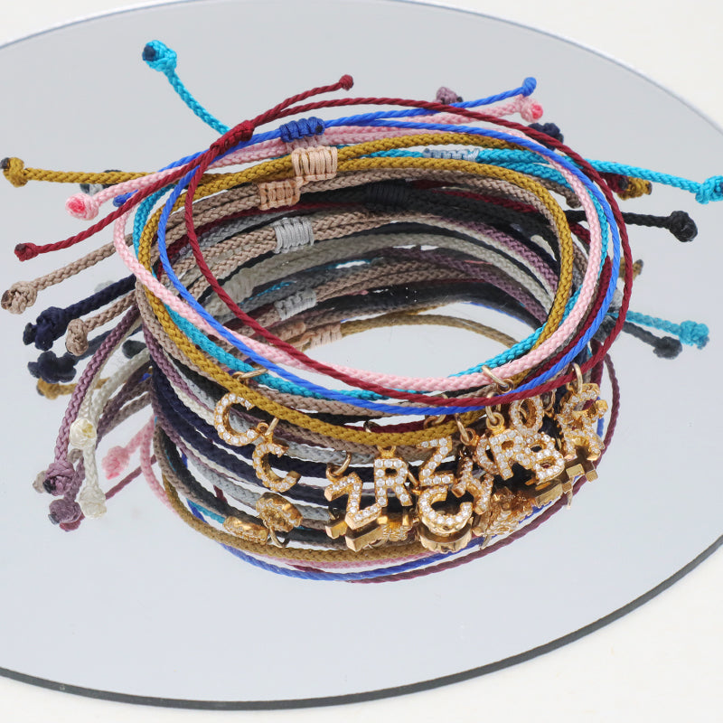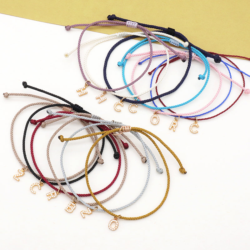 Fashion Jewelry Woman Handmade Adjustable Cotton Bracelet 925 Sterling Silver Letters Initial Charm Bracelet