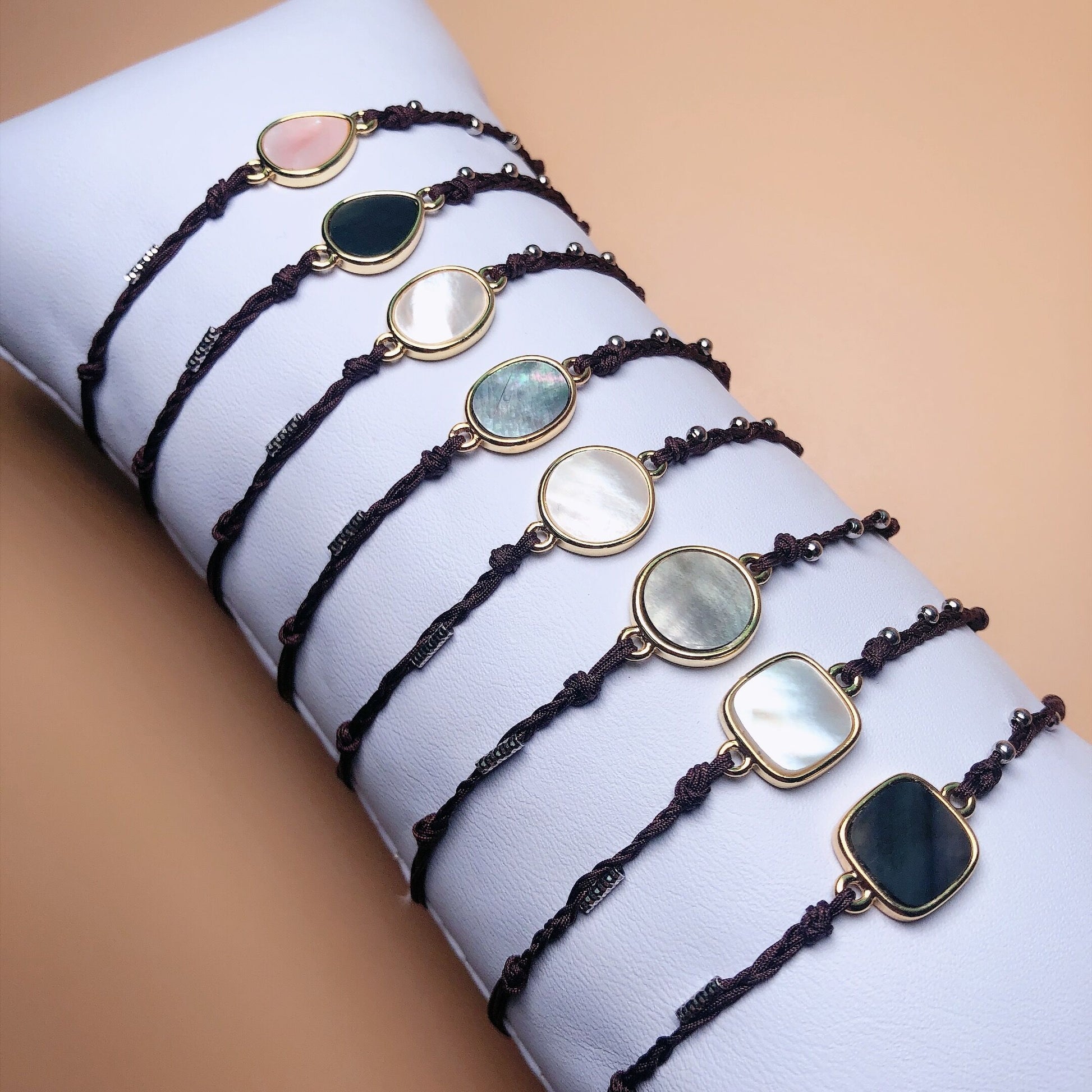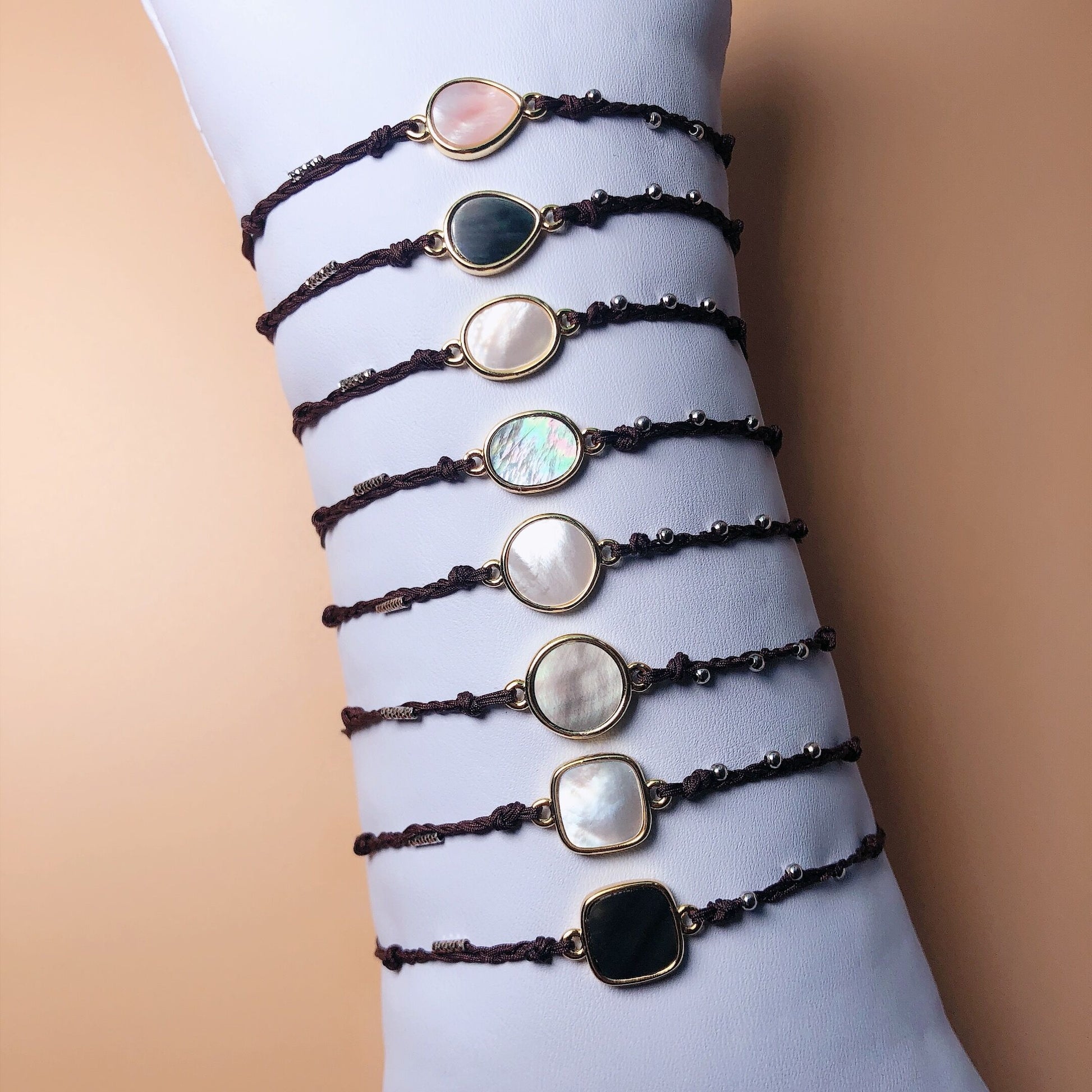 Fashion Women Jewelry Wholesale Custom Handmade Adjustable 925 Sterling Silver Beads Natural Shell Bracelet