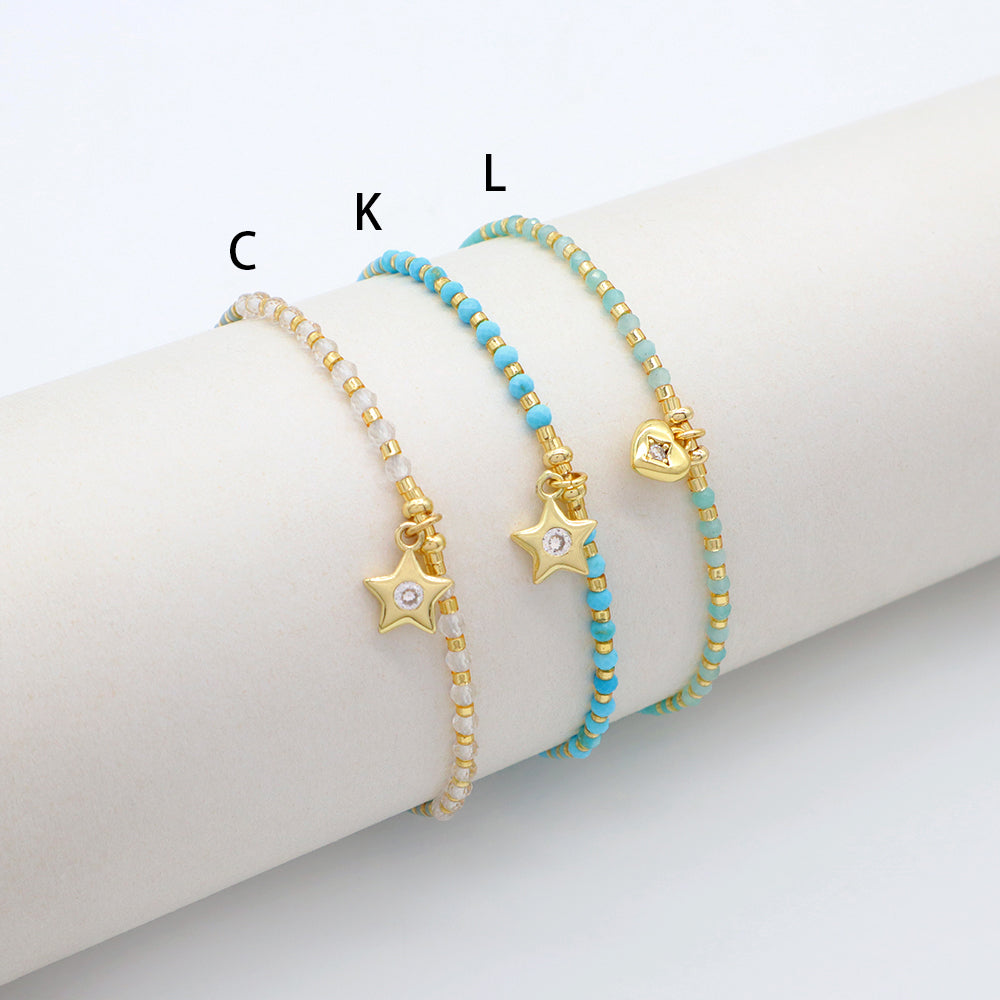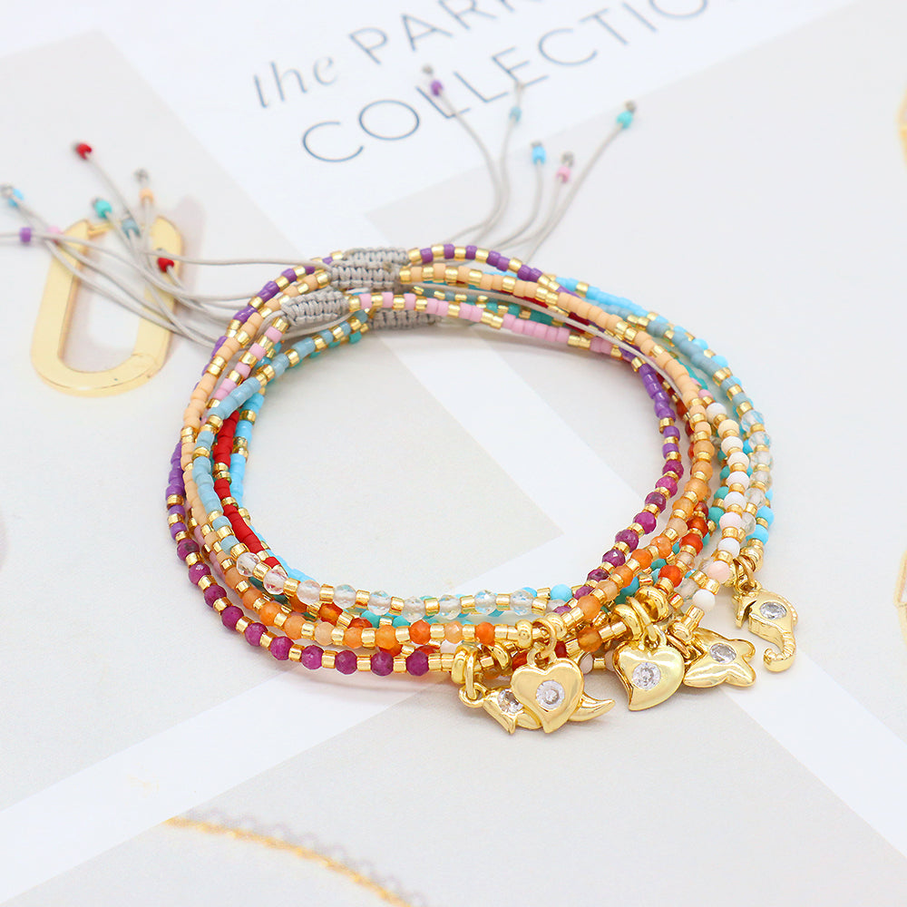 Handmade Adjustable 925 Sterling Silver Woven Macrame Miyuki Natural Stone Beads Bracelet