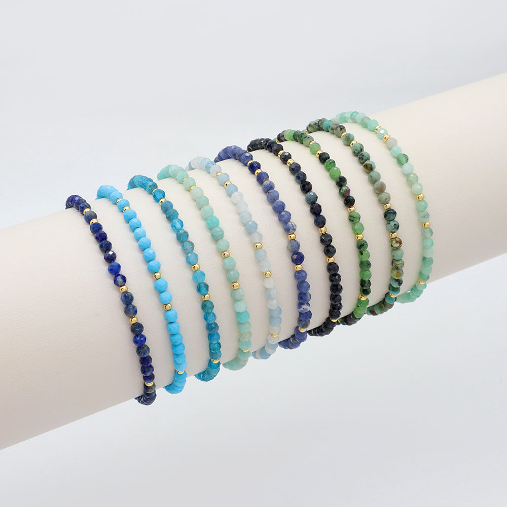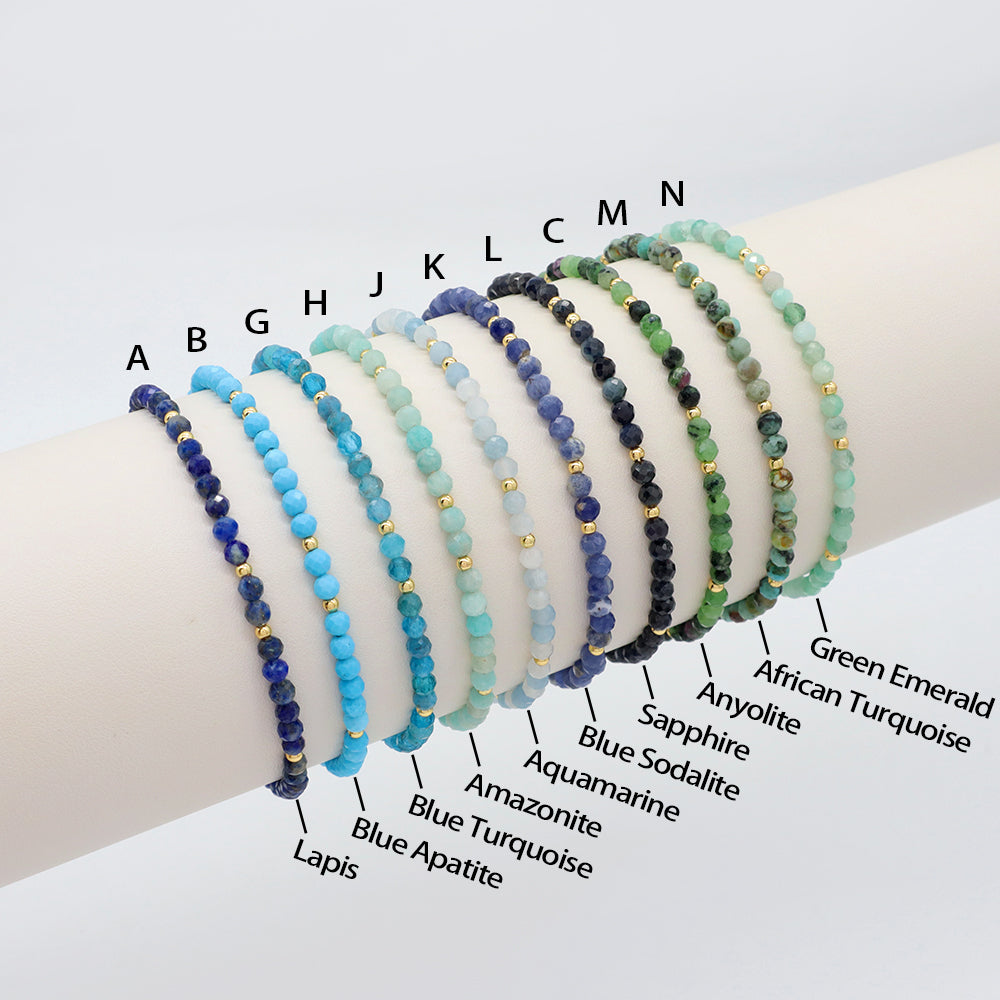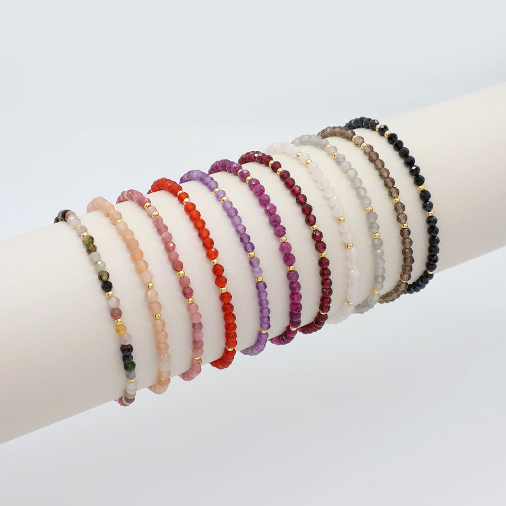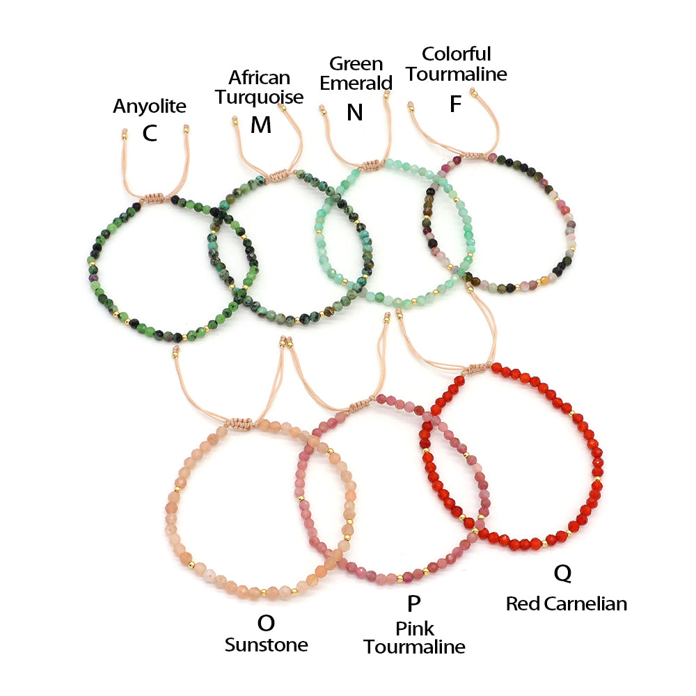 Handmade Custom Gemstone Gold Plated 925 Silver 3mm Natural Stone Beads Macrame Bracelet