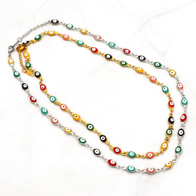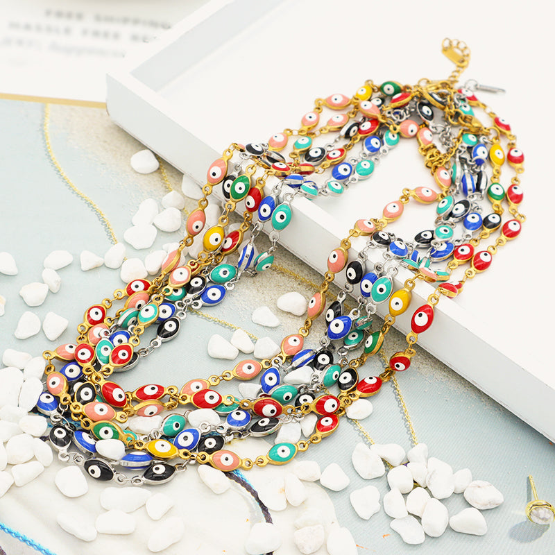 Handmade Customizable 5.5x8.5 oval evil eye stainless steel necklace