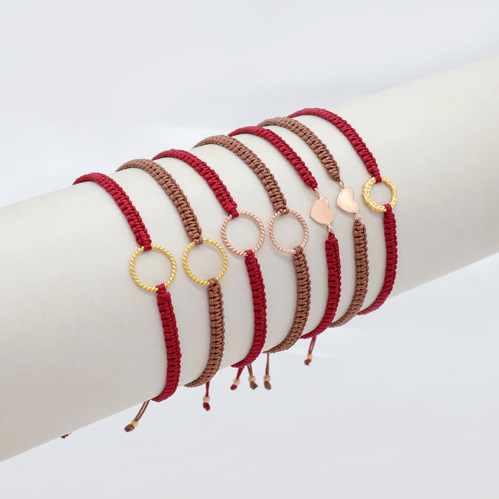 Handmade Customizable 925 Sterling Silver Charm Bracelet Cotton Thread Bracelet
