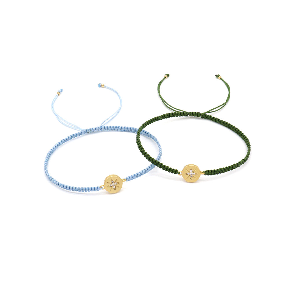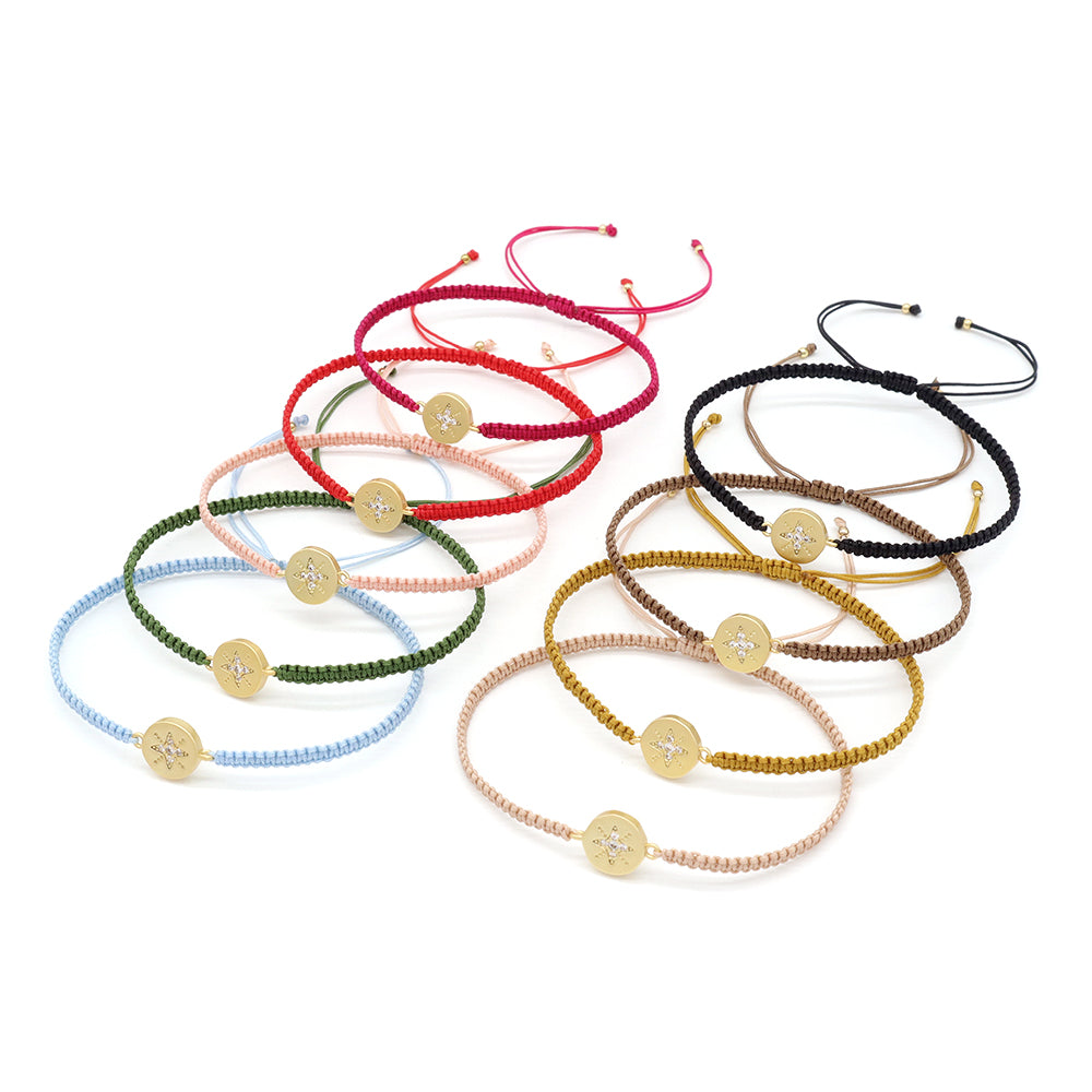 Handmade Customizable Brass Charm Bracelet With Cotton Wire