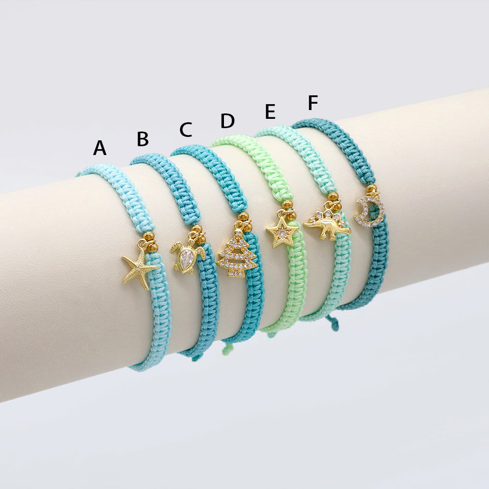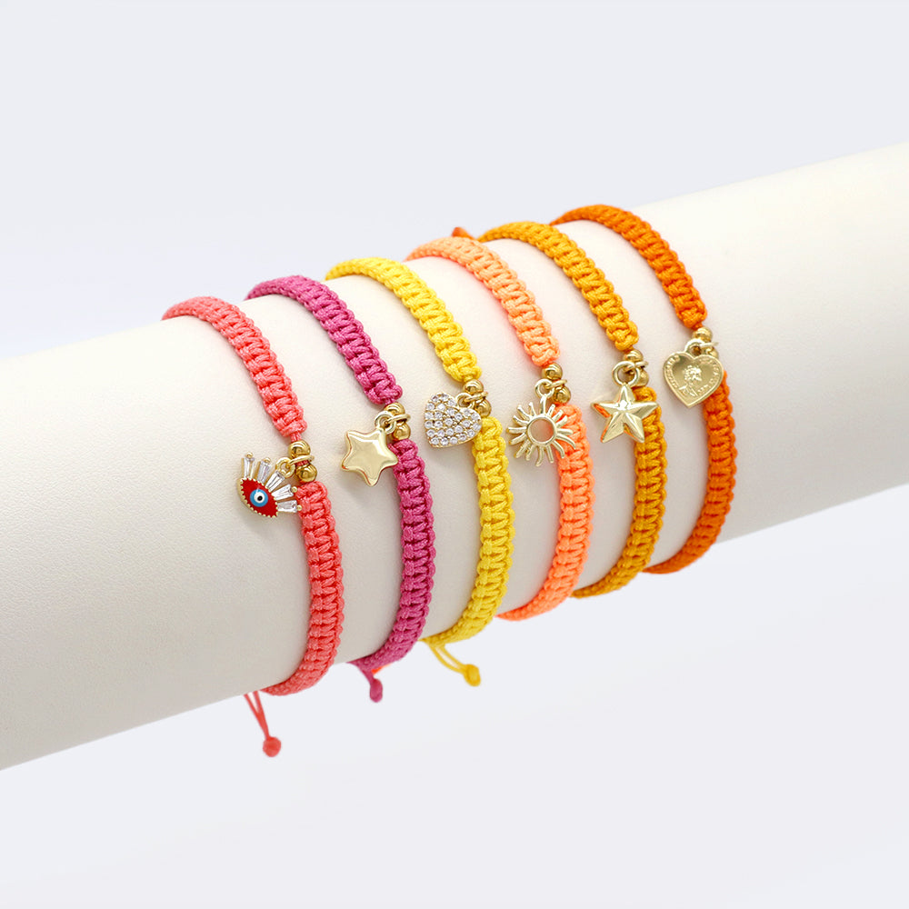 Handmade Customizable Brass Charm Bracelet With Cotton Wire