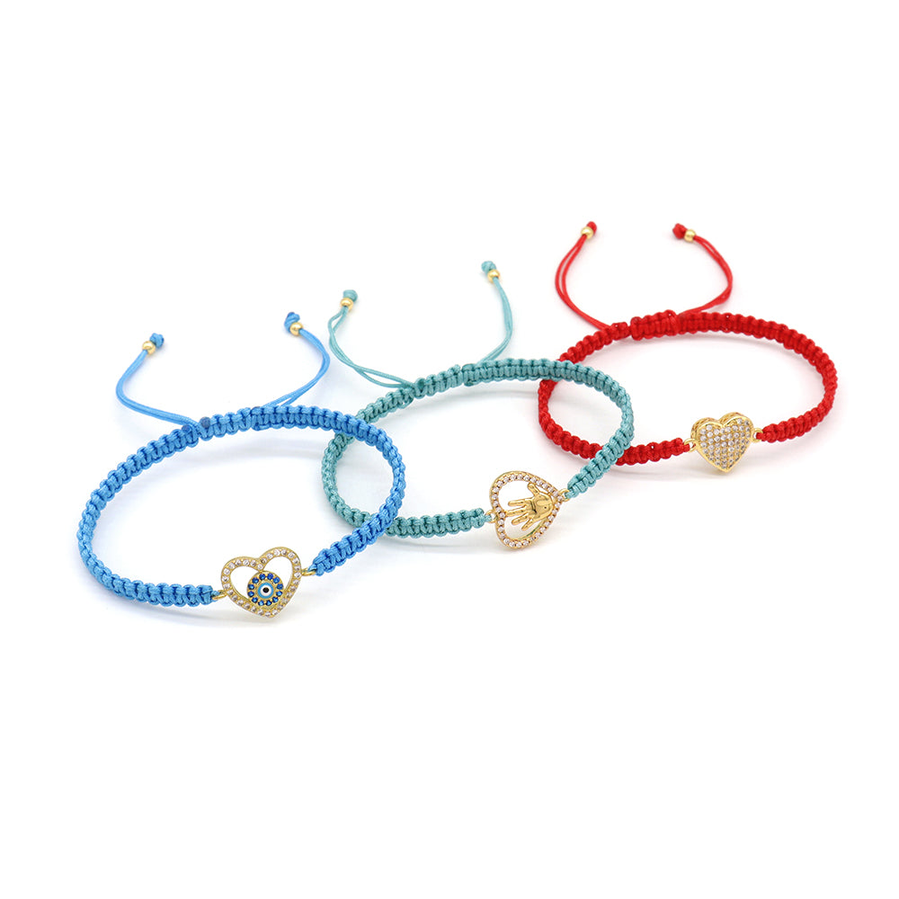 Handmade Customizable Brass Charm Bracelet With Cotton Wire