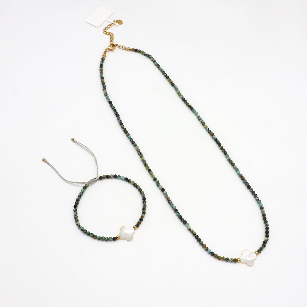 Material : Natural africa turquoise+stainless steel+ Shell Charms