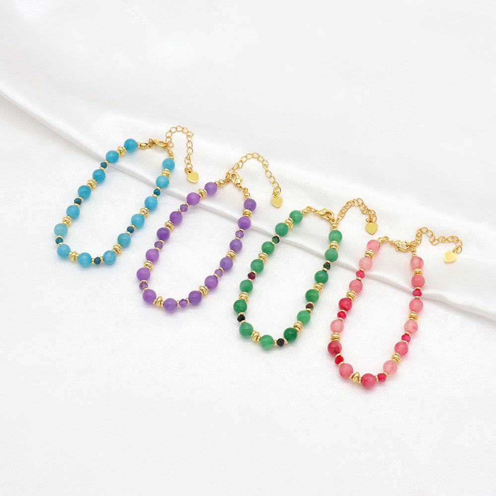 Handmade Customizable Natural Stone Beads Bracelet Brass Gold Plated Bracelet