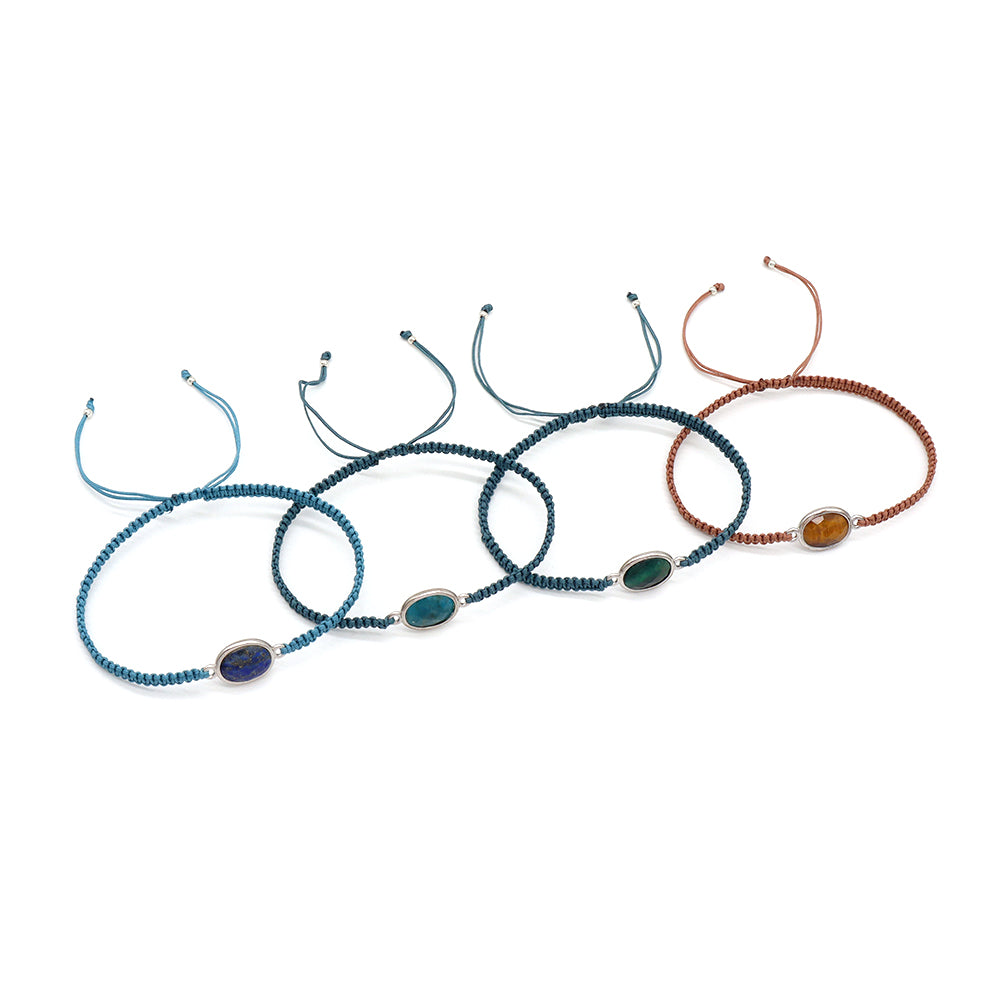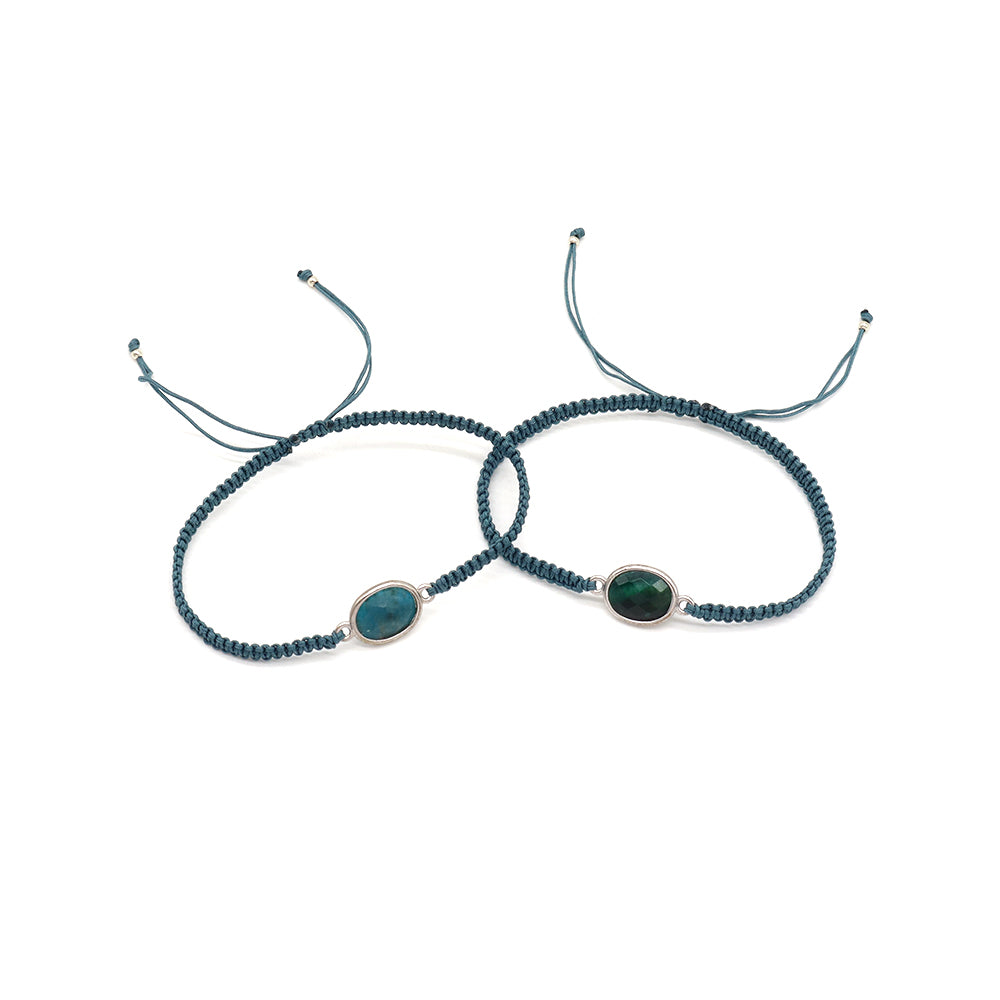 Handmade Customizable Natural Stone Charm Bracelet With Cotton Wire