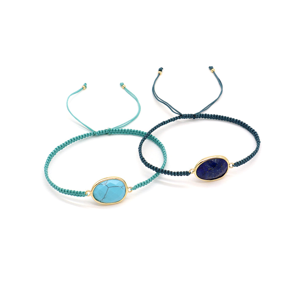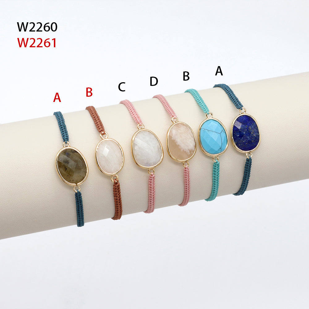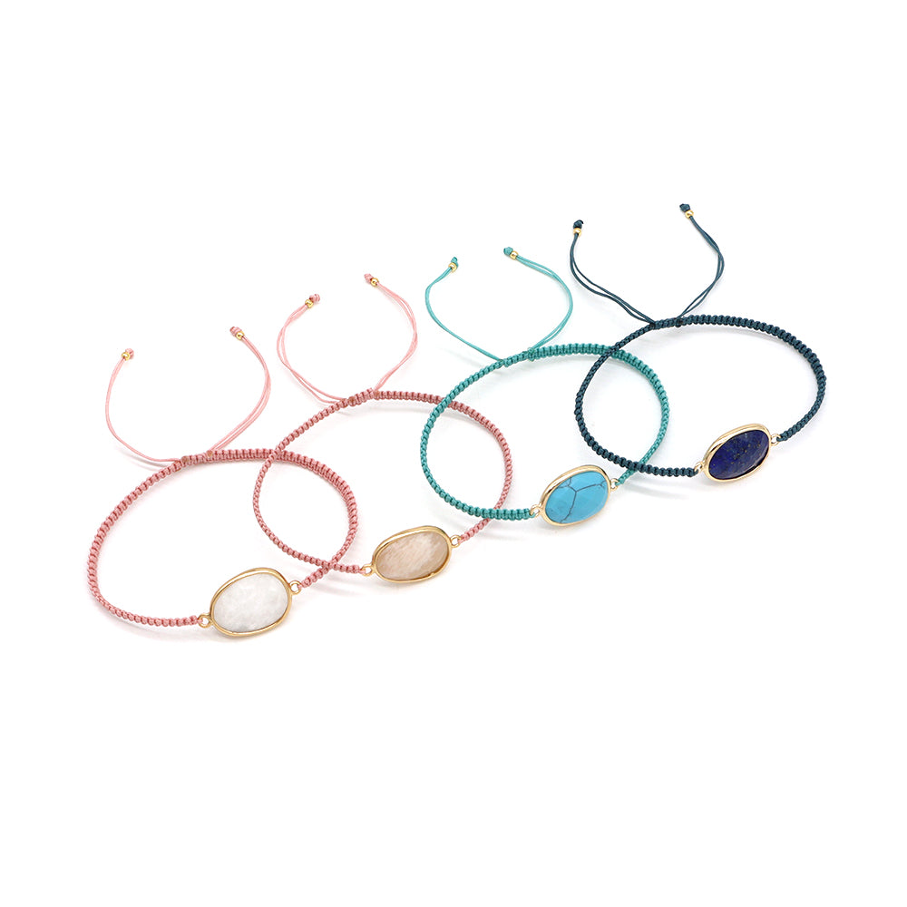 Handmade Customizable Natural Stone Charm Bracelet With Cotton Wire