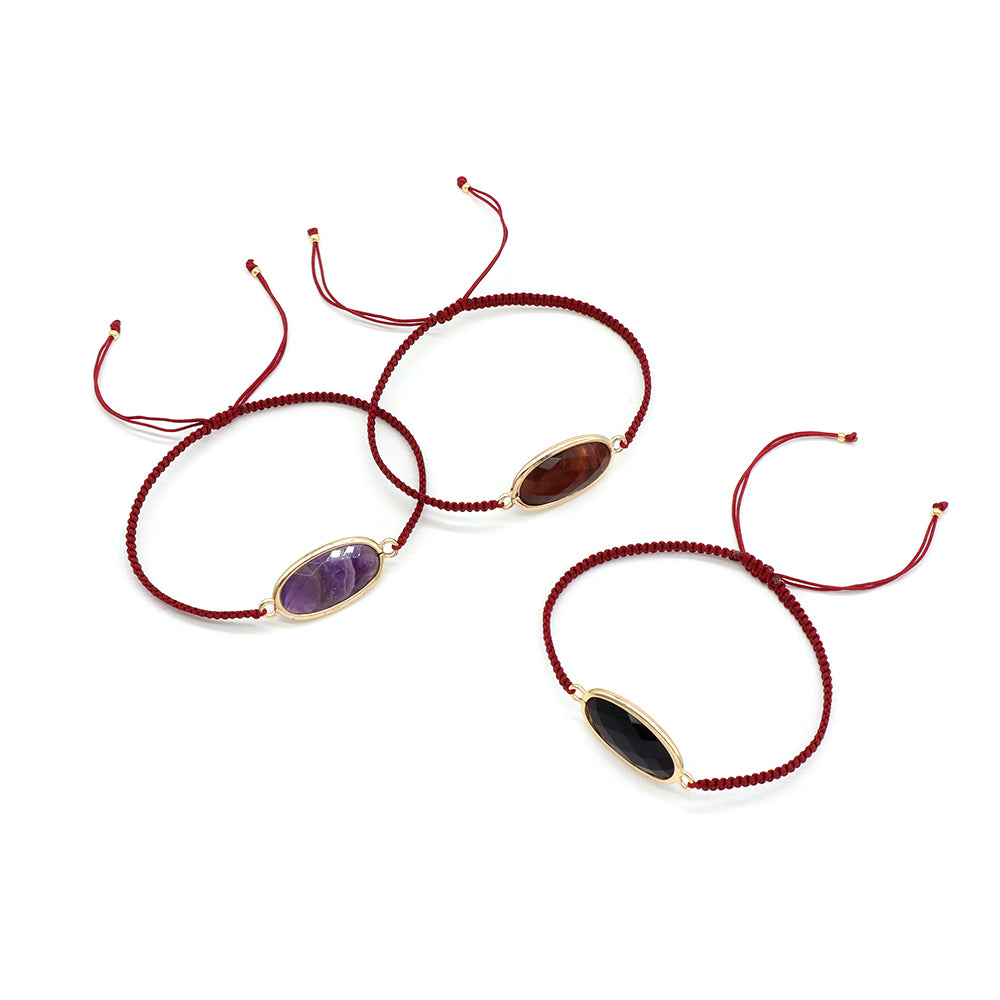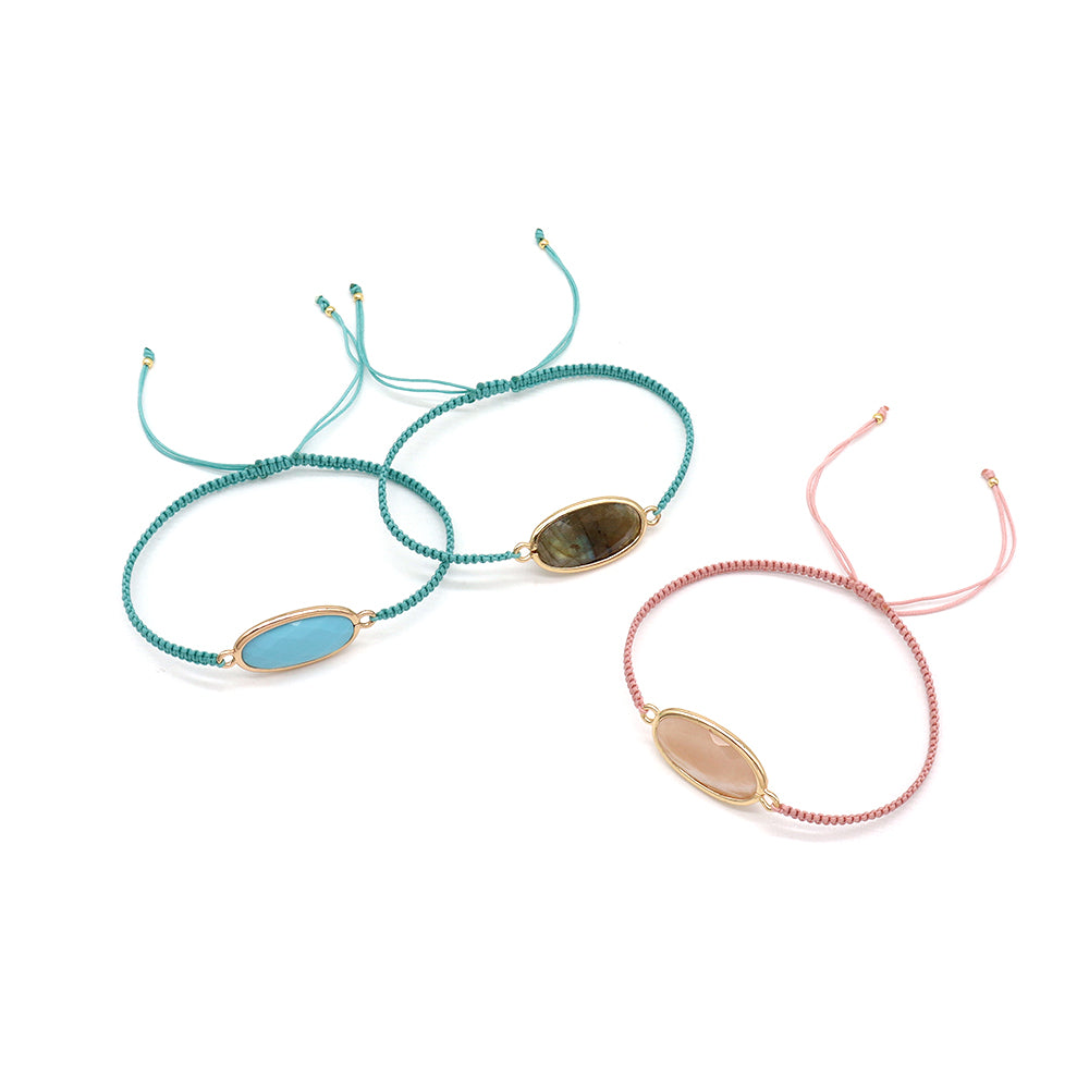 Handmade Customizable Natural Stone Charm Bracelet With Cotton Wire