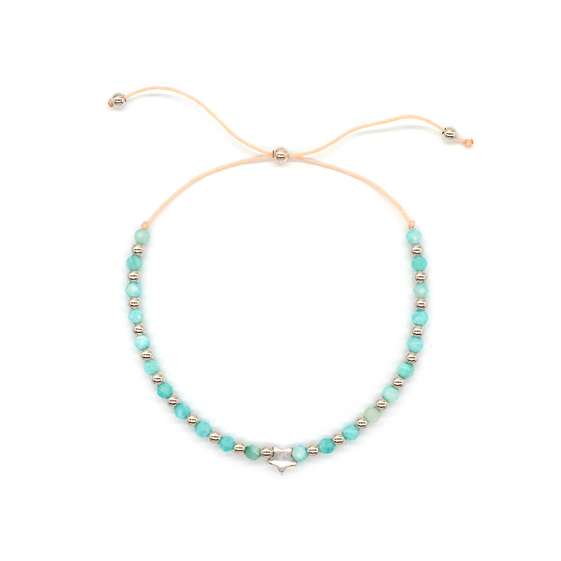 Handmade Wholesale OEM Customized Fashion Women Natural Stone 925 Sterling Silver Plated Star Charm Adjustable Natural Stone Bead Macrame Bracelet