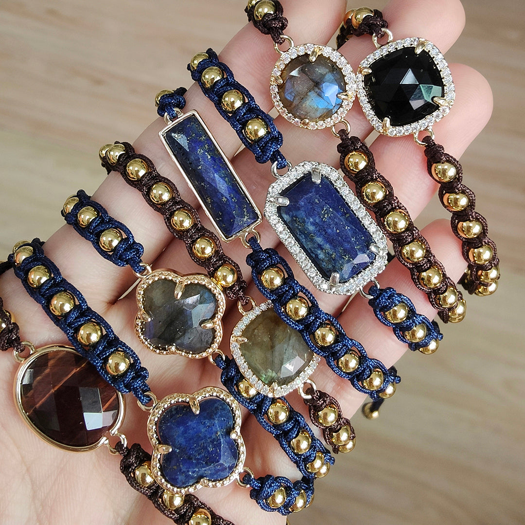 Manufacture Adjustable 4mm Brass Beads Woven Bracelet Factory Custom Women OEM Handmade Gold Plated Natural Stone Charm Bracelet