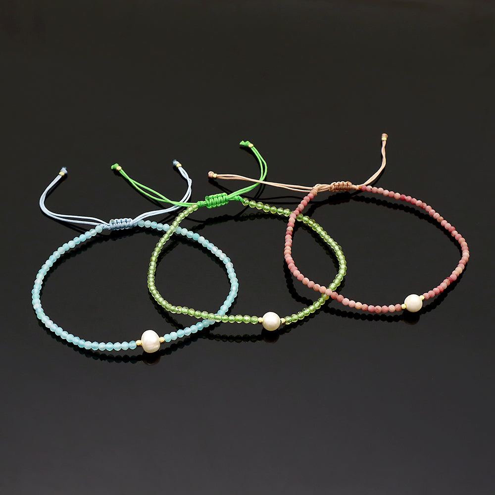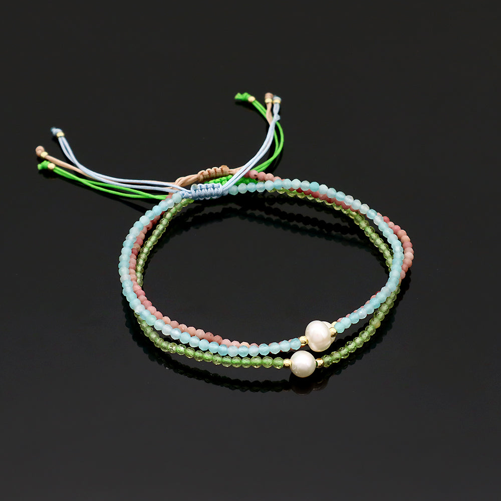Multi-color Natural Stone Beads Handmade Macrame Bracelet With Fresh Water Pearl