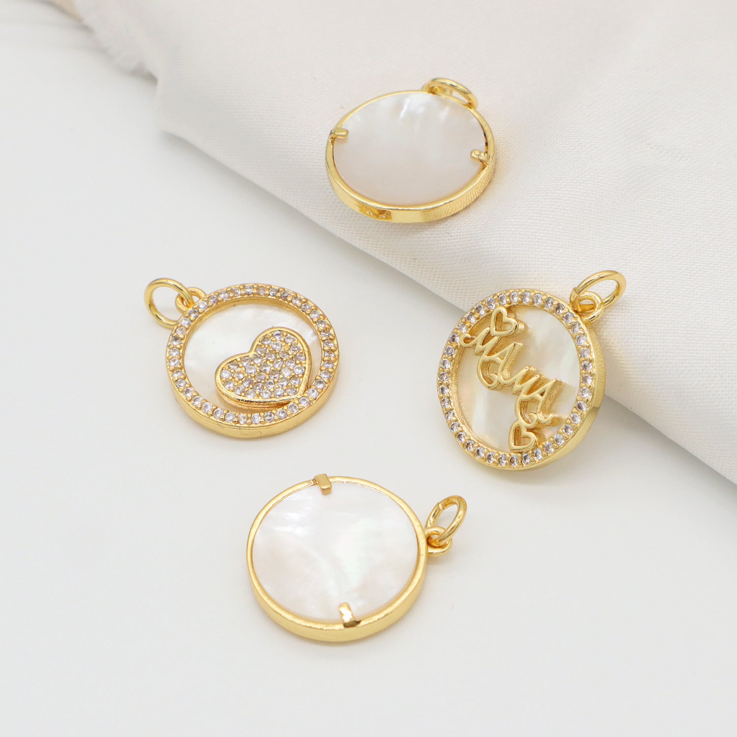 New Bulk Sale Round Shell Love Heart Charm Jewelry Necklace Pendant Micro Pave Cz Gold Plated Shells Heart Pendant For Women