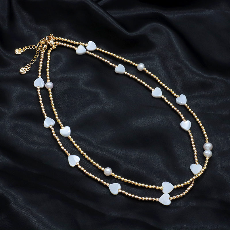 Gold plated Brass Beads Necklace With Shell Charms Fresh Water Pearl Necklace