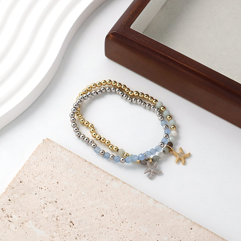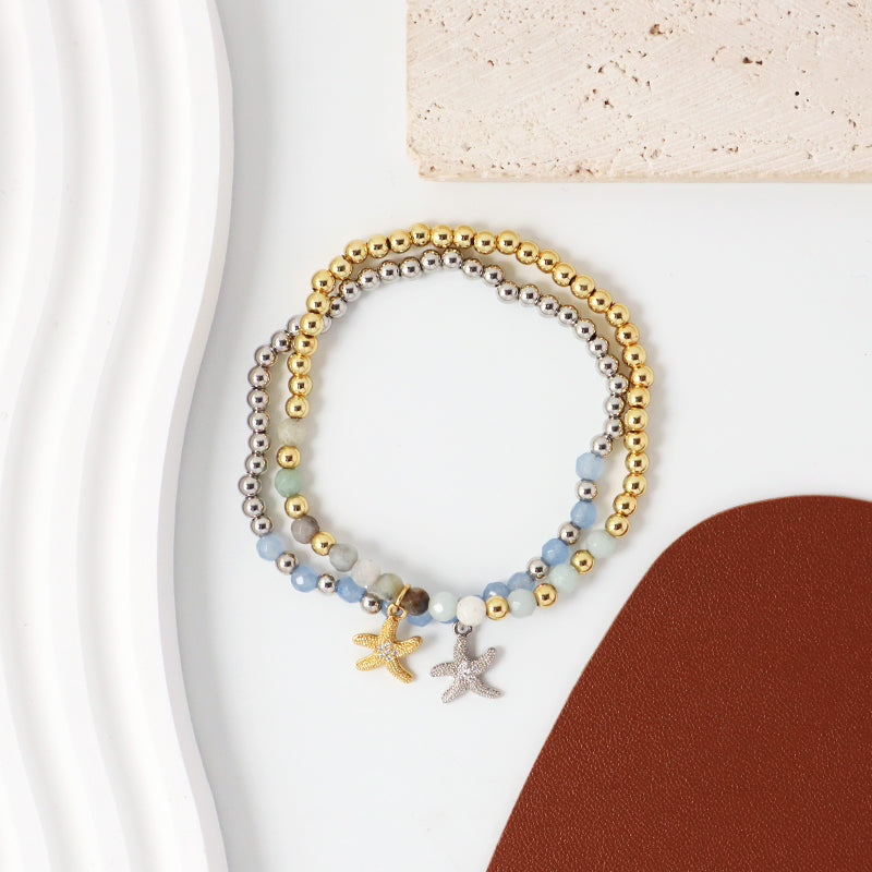 OEM Fashion Custom Handmade Women Jewelry Gift 4mm Gold Plated Beaded Elastic Yoga Natural Stone Beads Bracelet