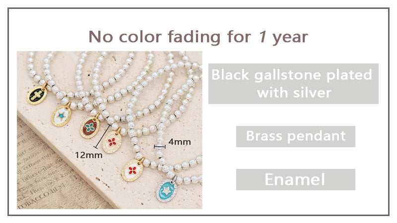 OEM Handmade Diy Wholesale Custom Women Gift Enamel Oval Star Flower Cross Charm Silver Plated 4mm Natural Stone Beads Bracelets
