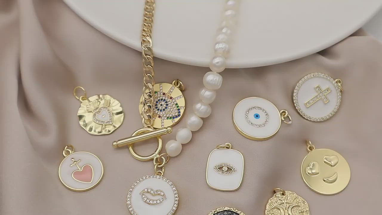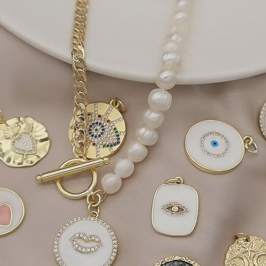 OT Buckle Chain Choker Evil Eyes Pendant Fresh Water Pearl Necklace OEM Gold Plated Enamel Heart Evil Eyes Pendant Necklace