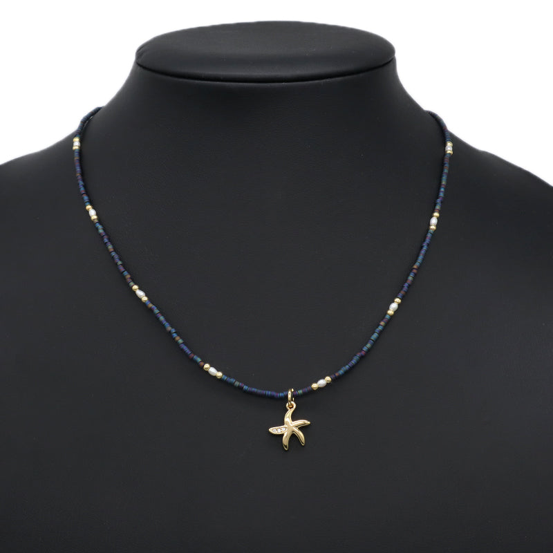 Custom Women Adjustable Gold Plated Handmade Natural Freshwater Pearl Shell Starfish Conch Pendant Miyuki Beads Necklace